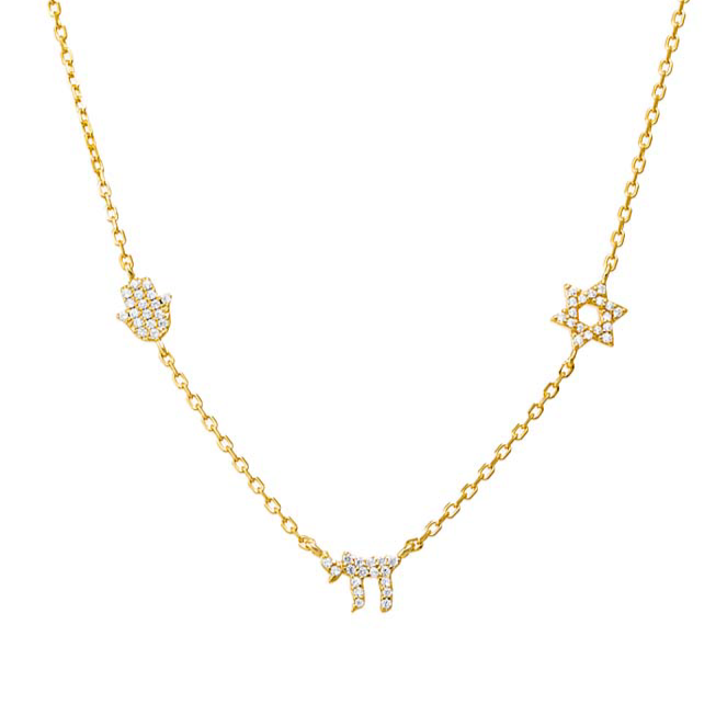 PAVÈ STAR OF DAVID CHAI HAMSA NECKLACE