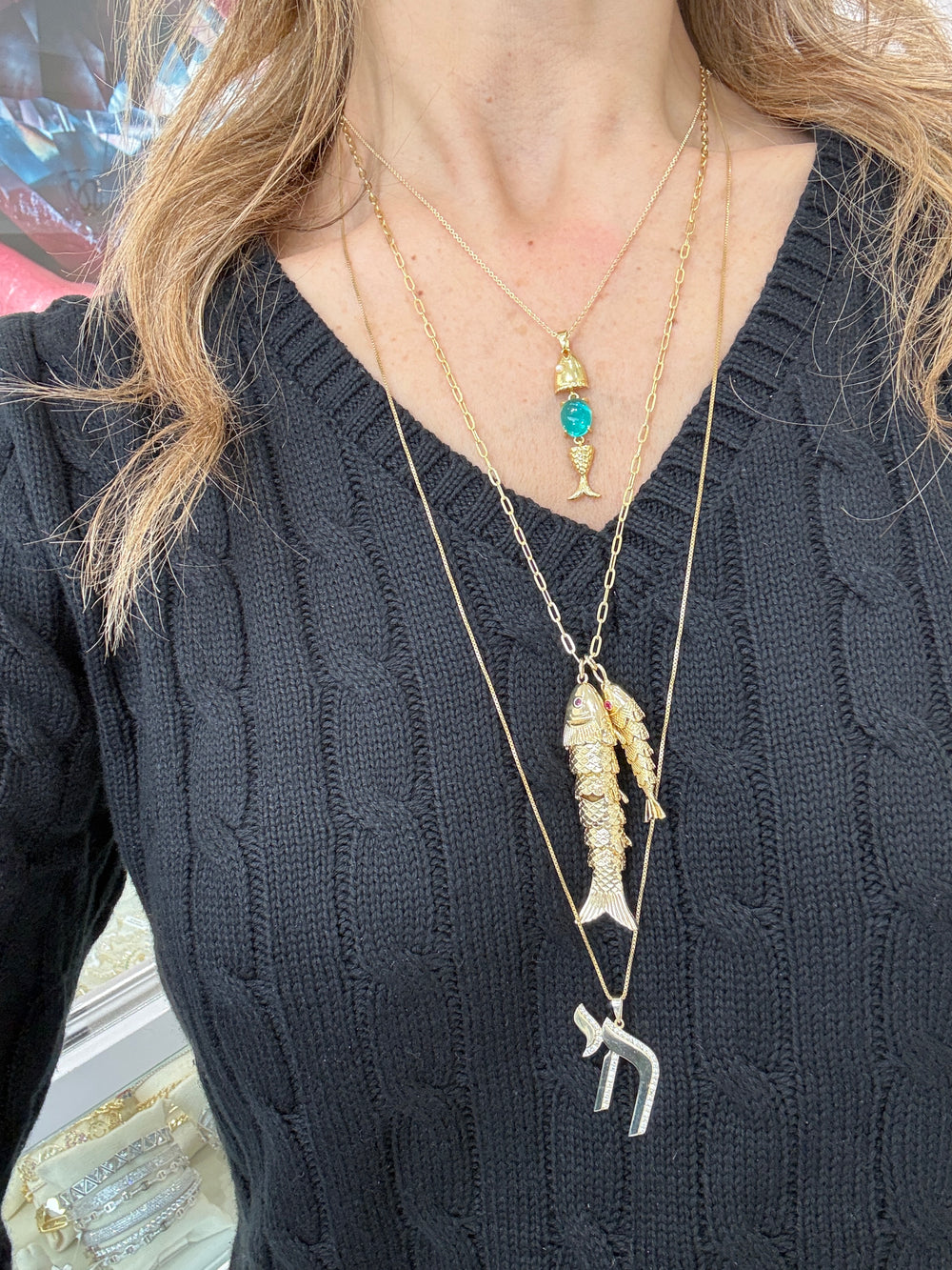 This is a beautiful piece. I receive a lot of compliments. I would really like to have two different links and I would like this to be a little bit longer so I’d like to see about ordering a longer chain or seeing what I have at home but I’ve been wearing it every day.