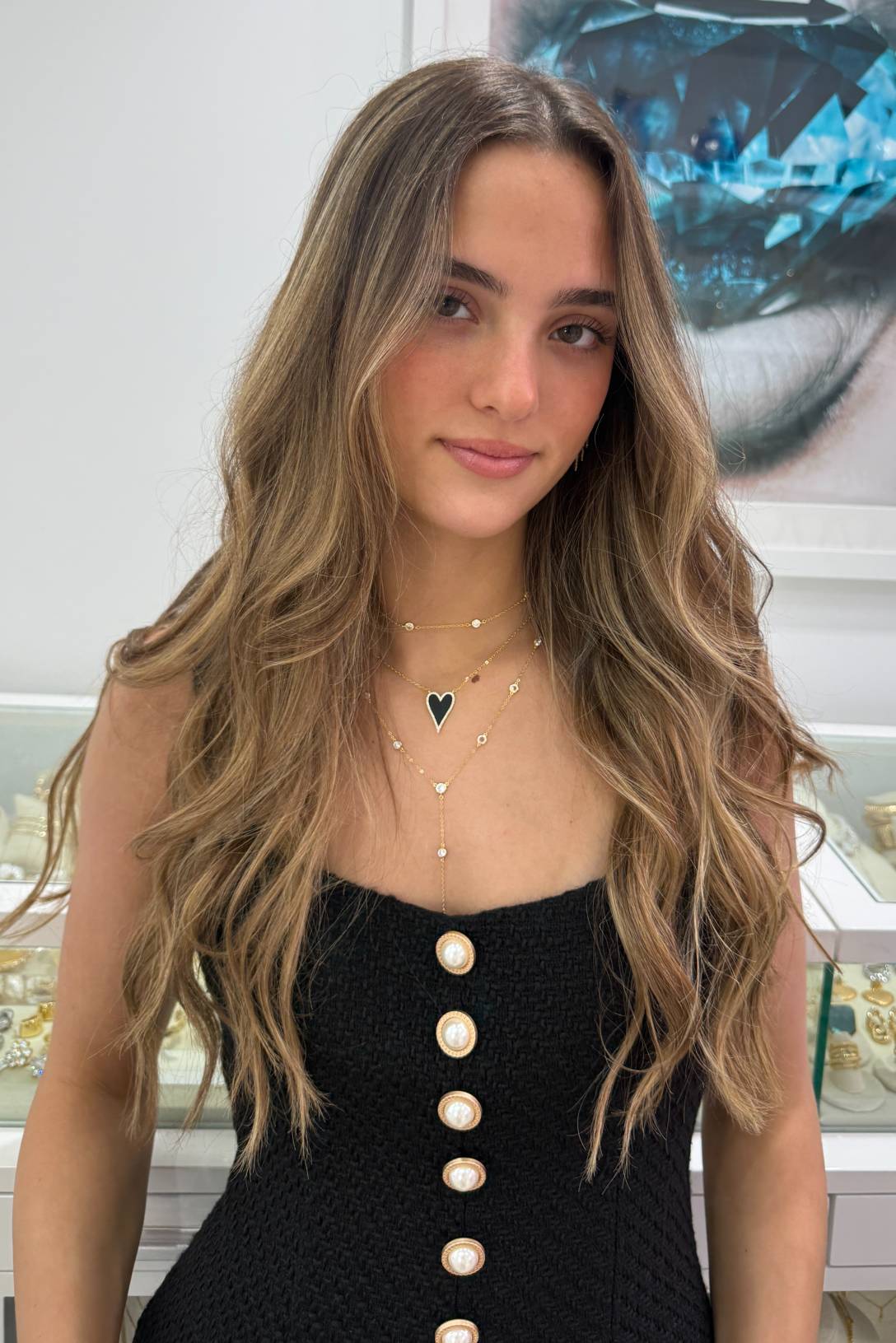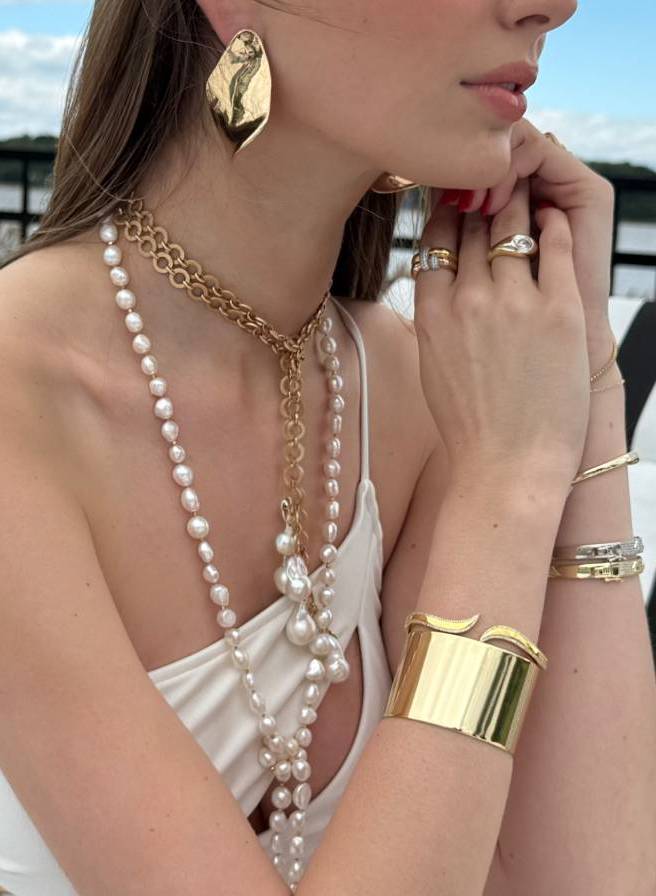This piece is absolutely stunning! It is more beautiful in person than on the website. It's a great piece to wear on its own or as a layering piece.