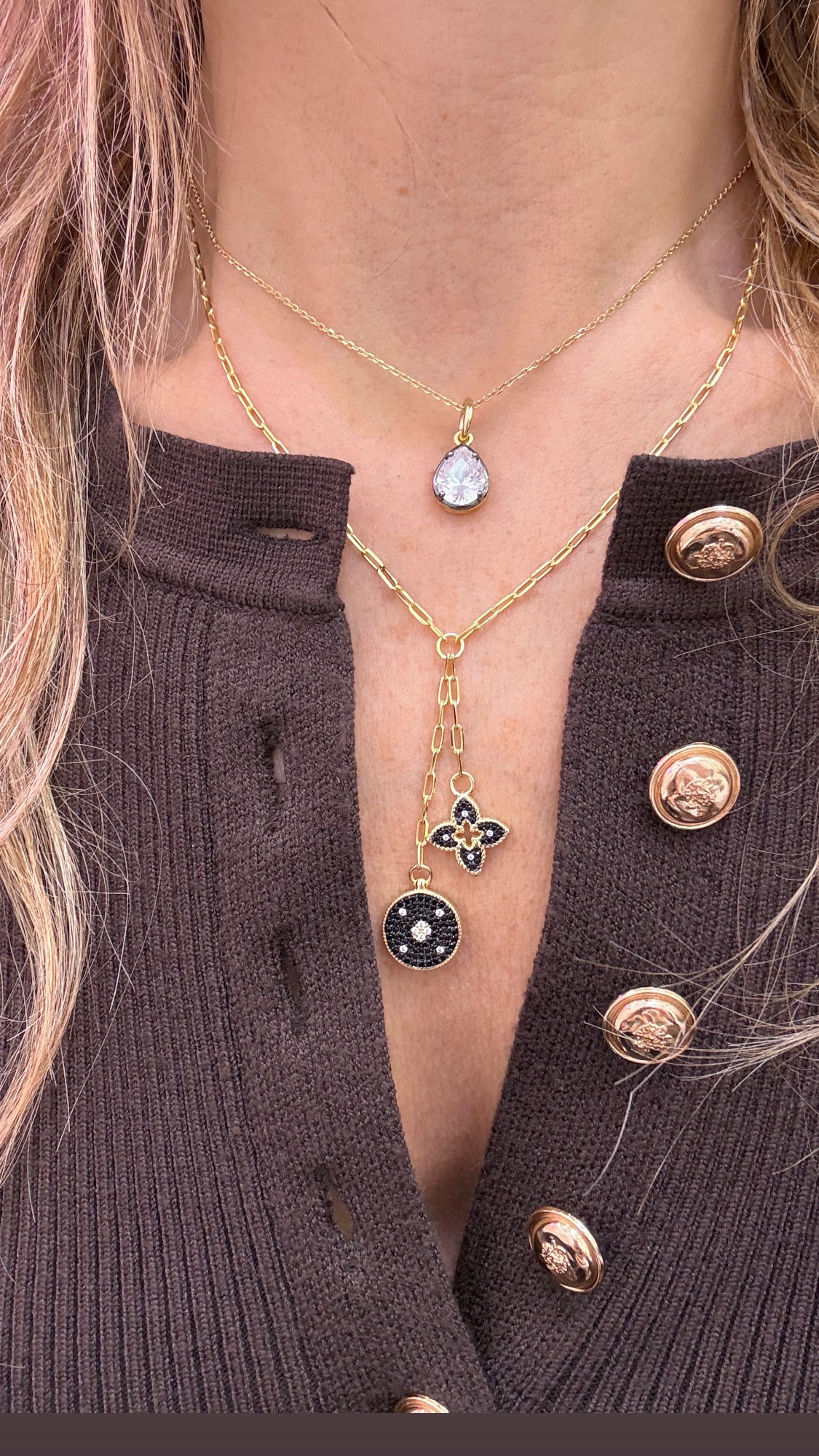 Sterling silver with gold plating double drop clover lariat on mini paperclip chain adjustable 16”-18”