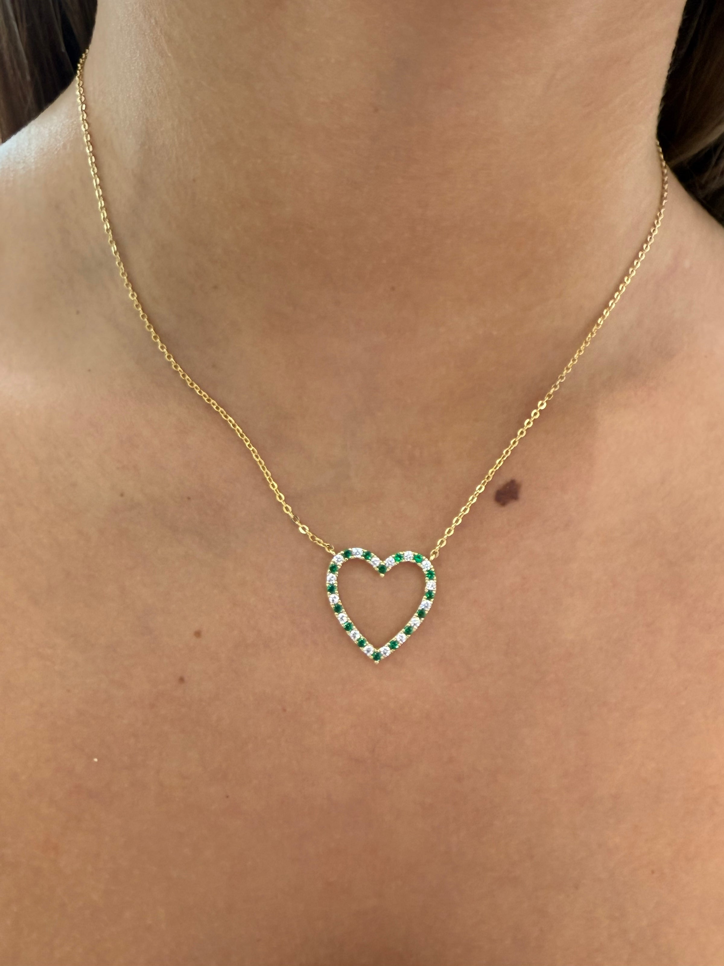 EMERALD GREEN HEART OUTLINE NECKLACE