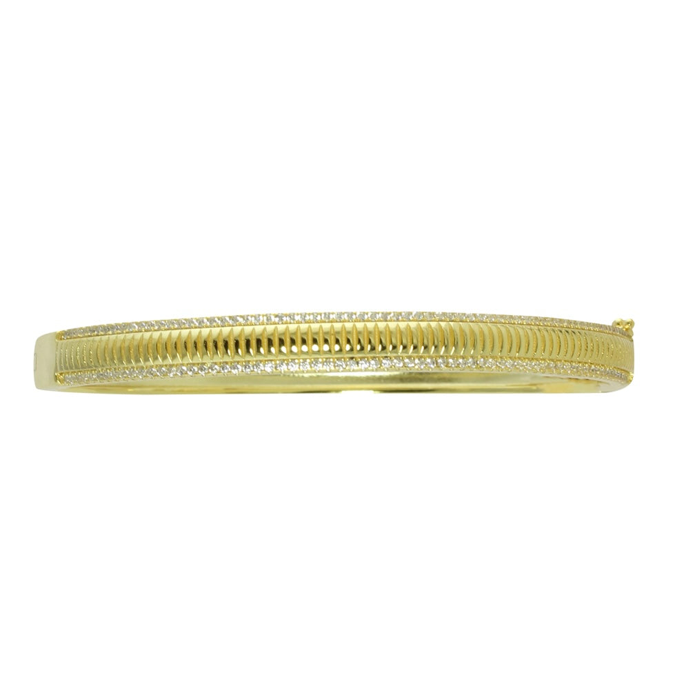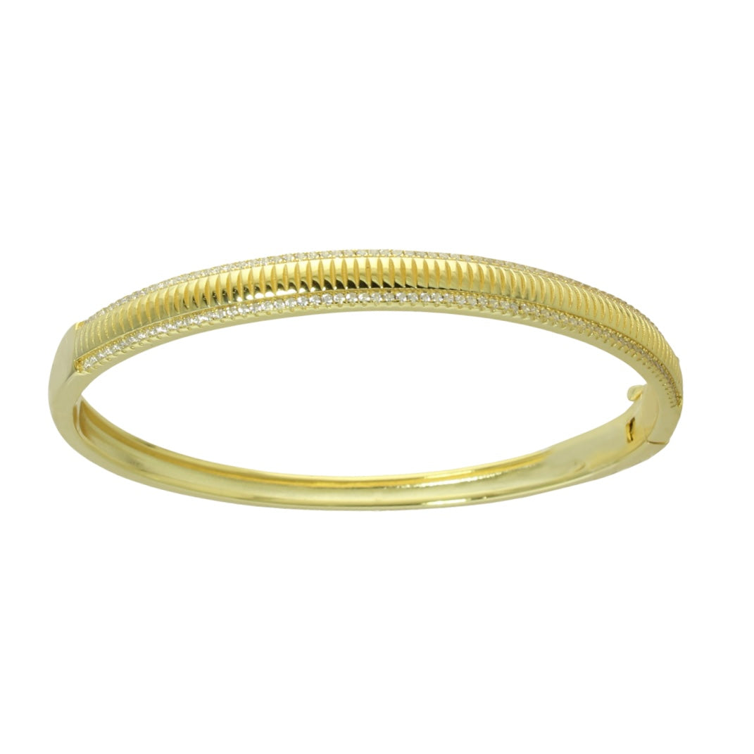 14k vermeil fluted bangle with micro pavè borders. Sterling silver.