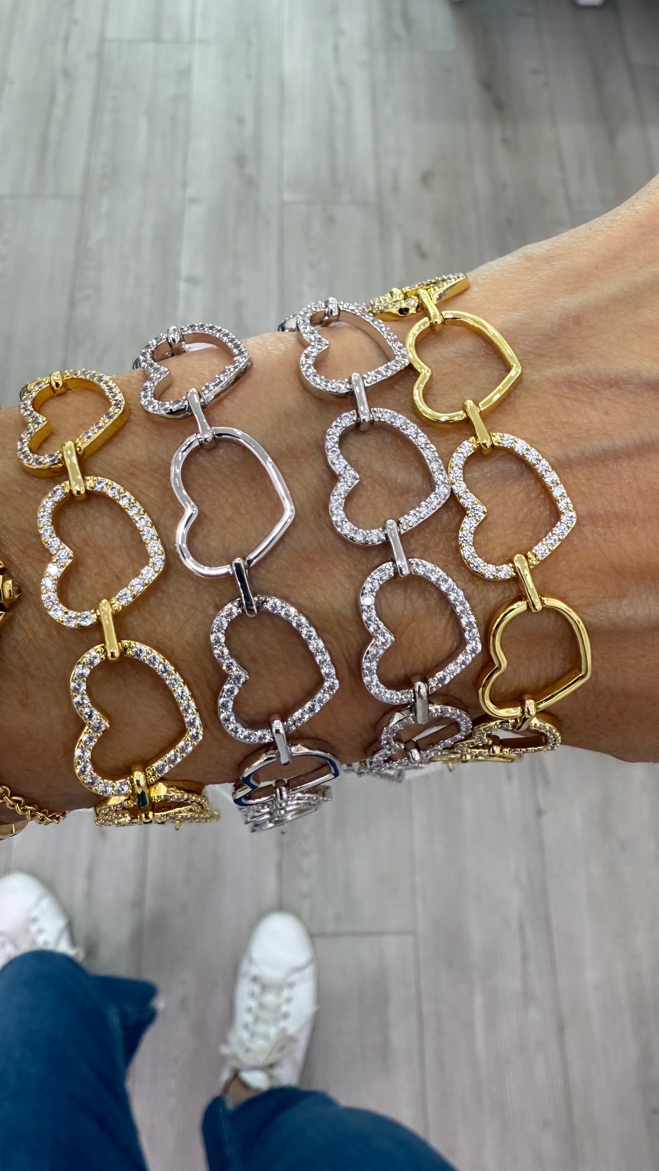 vermeil all open heart link bracelet alternating cz & gold hearst. 6”