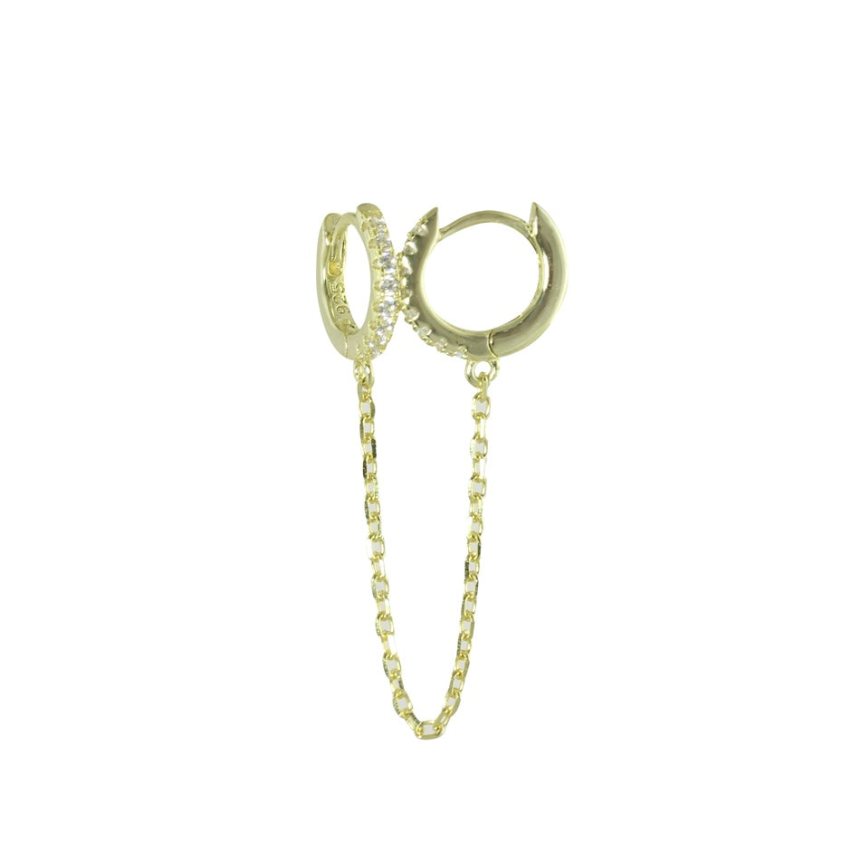 DOUBLE PIERCING CHAIN HUGGIE EARRINGS
