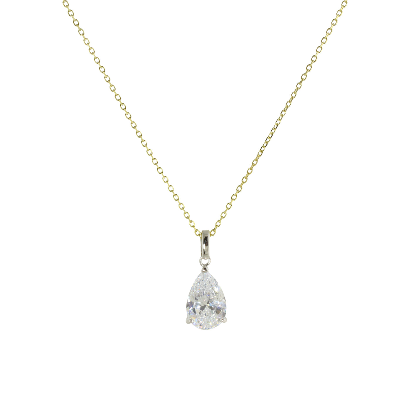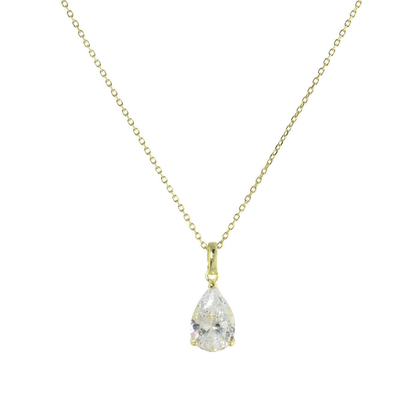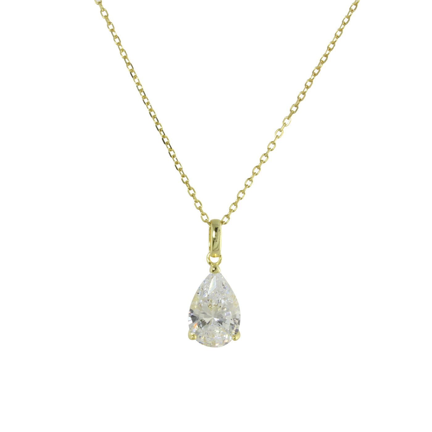 14k vermeil sterling silver teardrop/ pear shaped solitaire pendant on adjustable vermeil chain.
