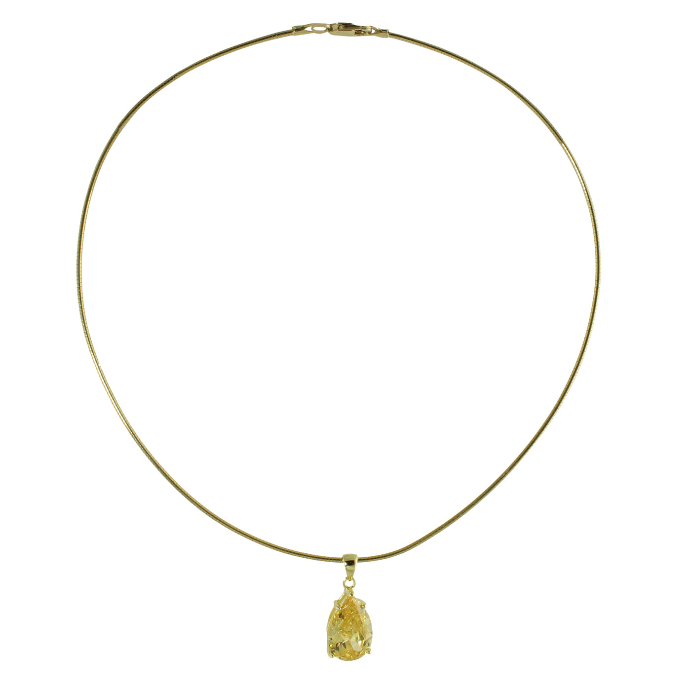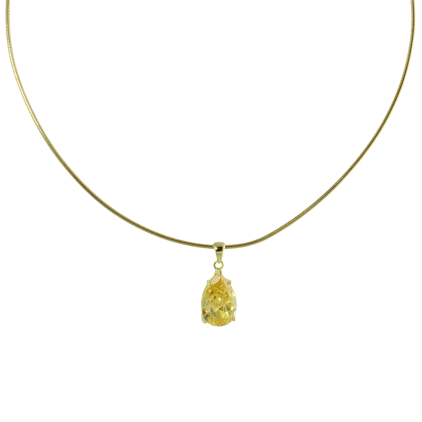 14k vermeil sterling silver flex soft wire choker/necklace with solitaire pear diamond pendant. Aja teardrop pendant AAA quality cubic Zirconia.