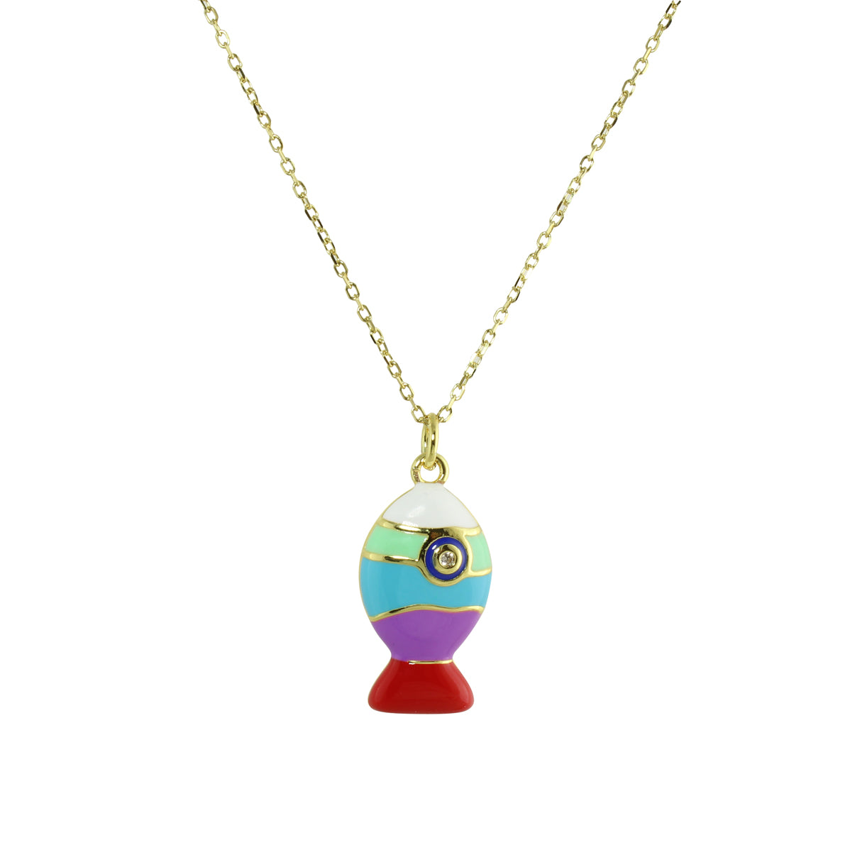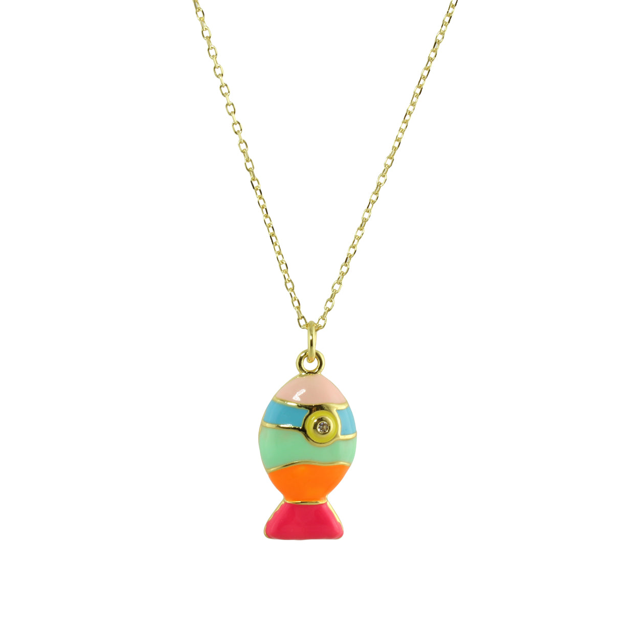 Multi color mini fish necklace on adjustable chain. Enamel fish is approx .50”