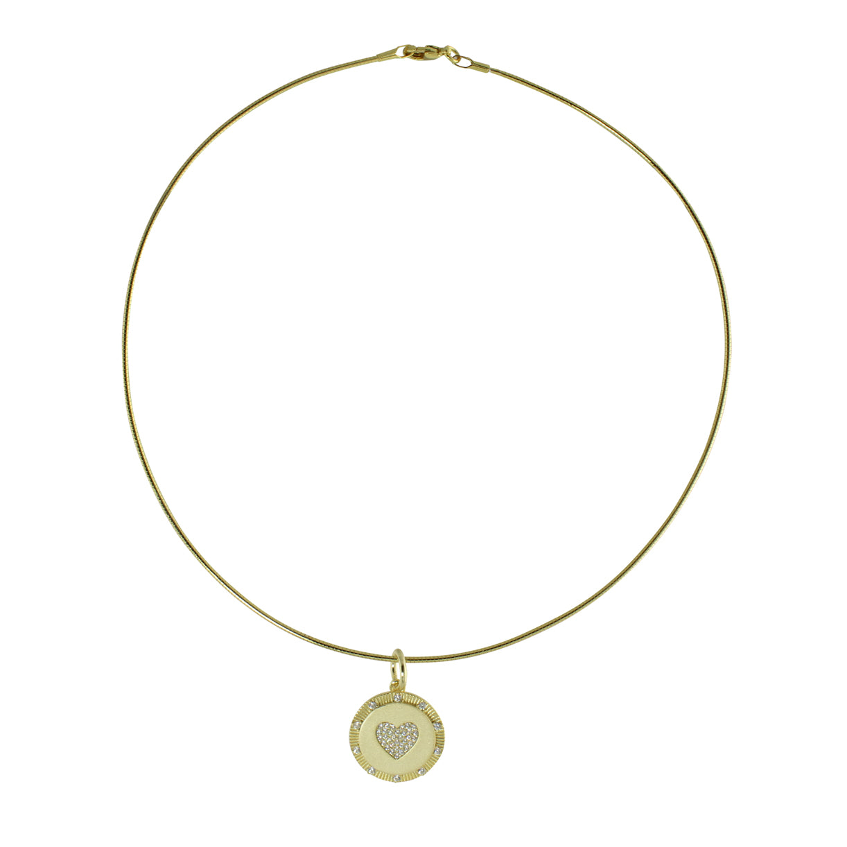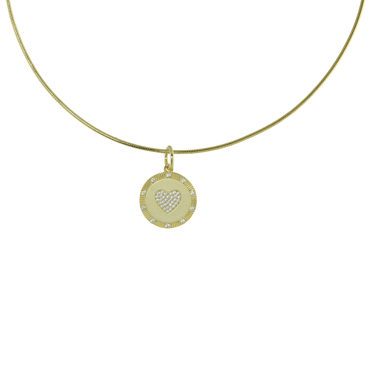 Vermeil brushed gold disc pendant on a wire choker 15”