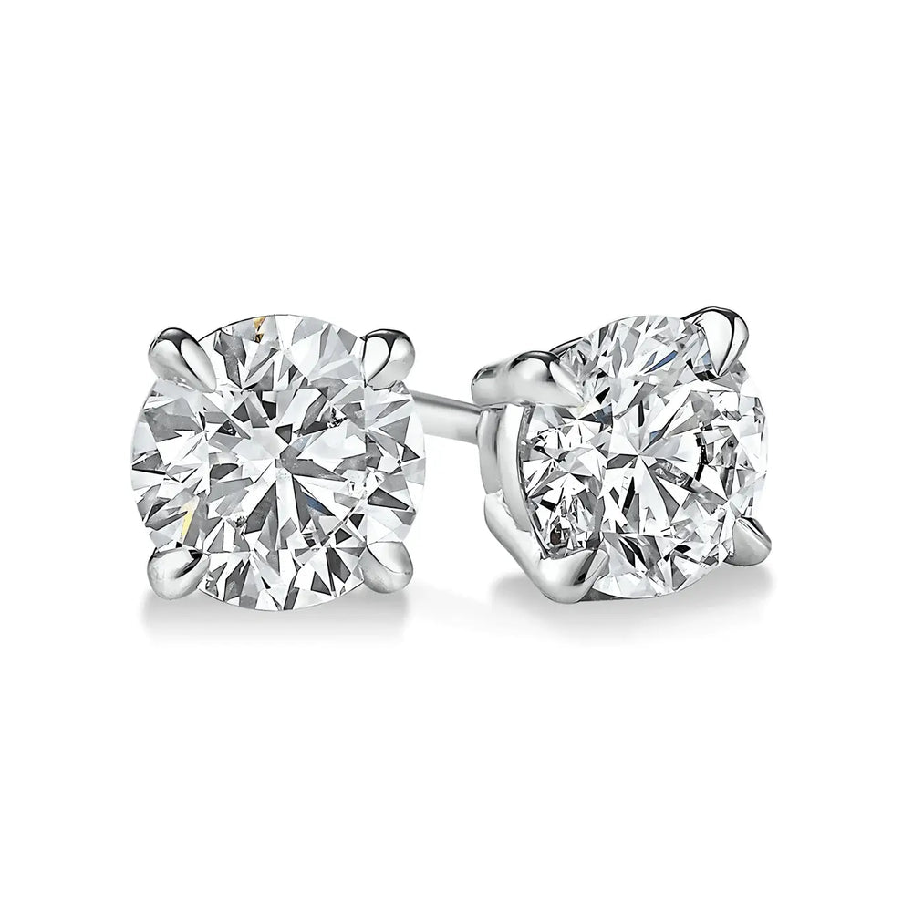Classic cz studs earrings in sterling silver with rhodium or 14k vermeil overlay.