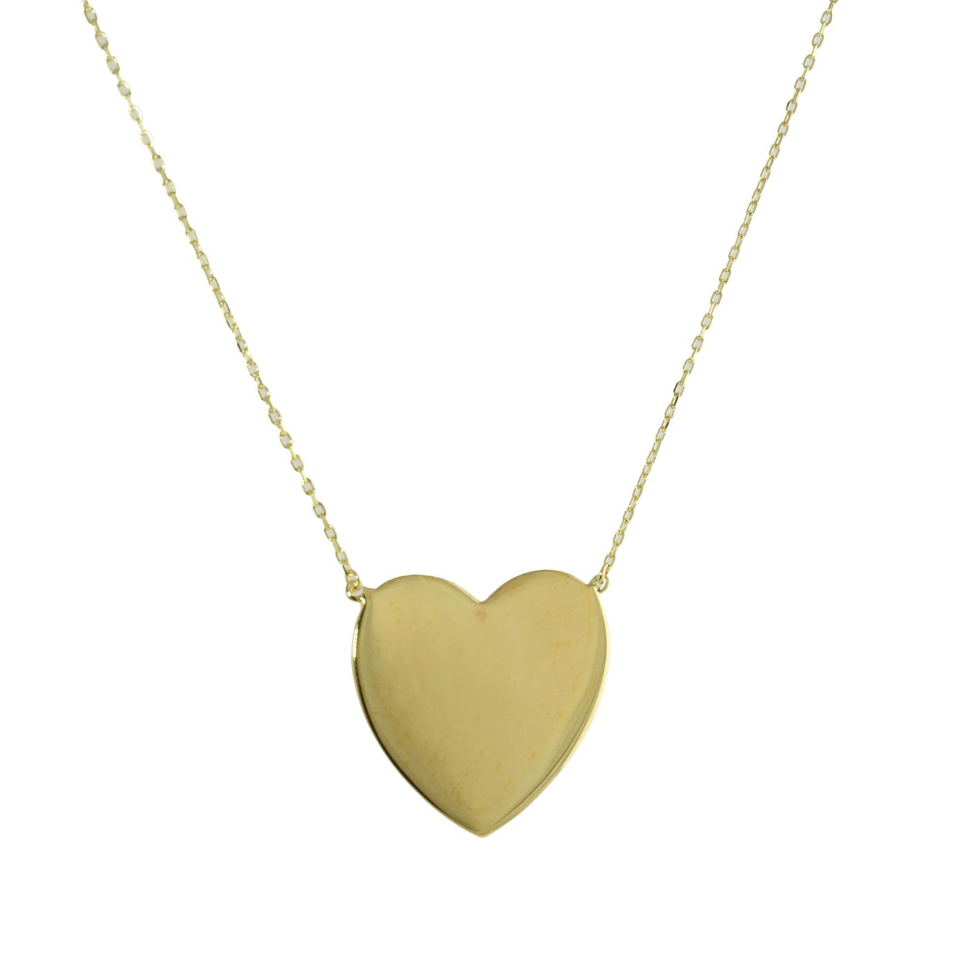 14k vermeil big gold flat heart necklace on adjustable le 16-18” chain.  Heart is 1.25”
