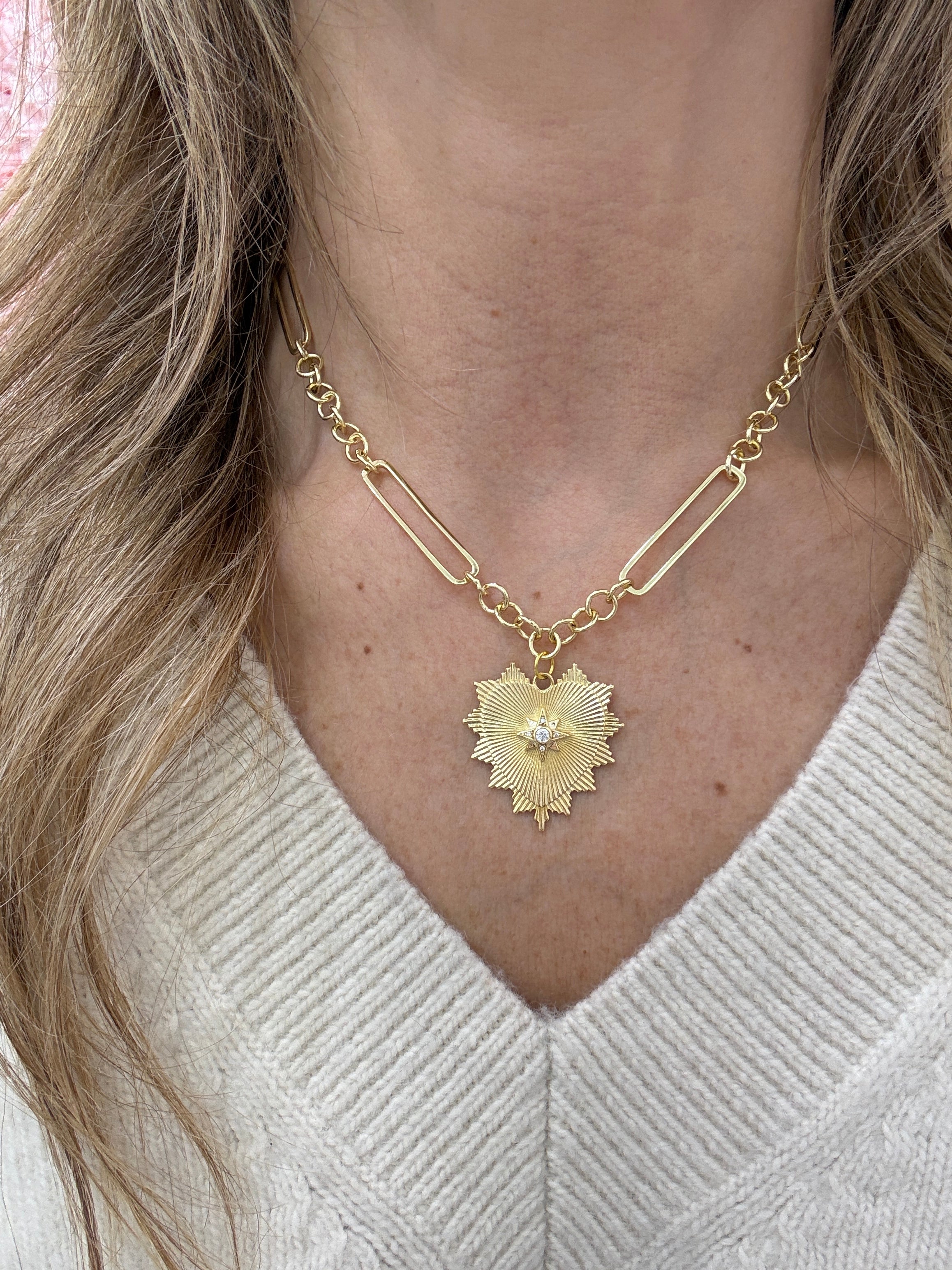 FLUTED HEART MIXED LINK NECKLACE